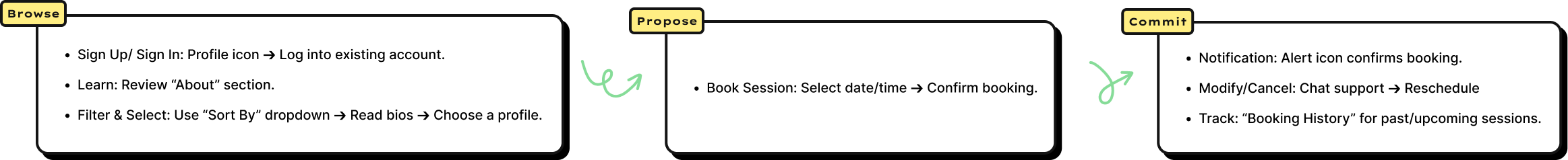 Storytelling through the Browse → Propose → Commit flow made the design more intuitive and aligned with real user needs.